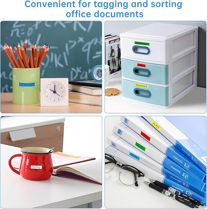 - Color: Black on Clear/White/Red/Blue/Yellow/Green; Size: 3/8 inch(9mm) x 26.2 feet(8m)