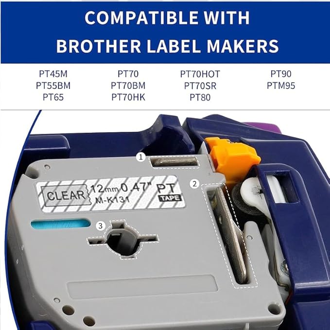- Self Adhesive: Strong self adhesive make m-k131 clear tapes can be used on a variety of surfaces, such as glass, plastic, wood, etc. m-k131 clear 12mm label tapes help you organize your things effectively.