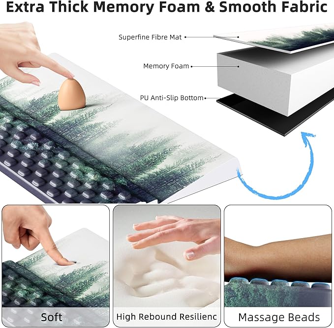 Ospelelf Keyboard Wrist Rest Pad, Comfy Ergonomic Keyboard Stand Holder, Office Desk Accessories, Work from Home Essentials, Green Forest Pattern