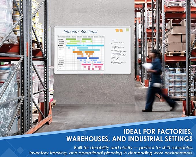 - Versatile for Professional Spaces: Perfect for schools, open offices, training rooms, factories and studios, this dry erase board for wall provides ample space for teaching, brainstorming, planning, and presentations. It’s ideal for any professional environment that requires a large dry erase board with a durable and spacious writing surface