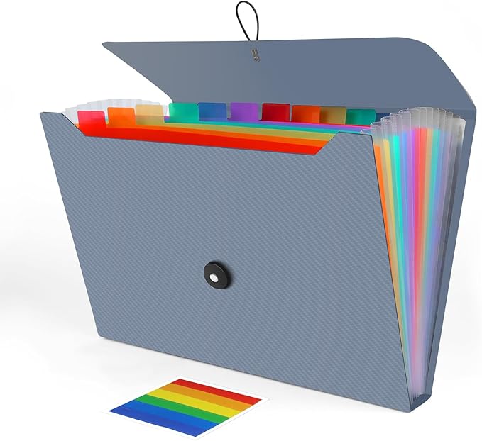 - 【COLORFUL DESIGN】Our expandable file folder features rainbow-colored inner pages and small colored labels for easy classification, making it both functional and visually appealing