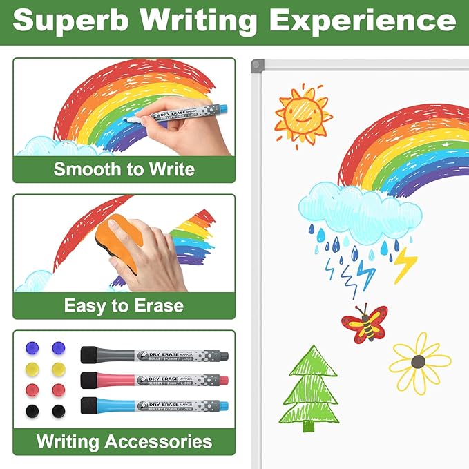 - Reliable Production Process: Round nylon corners, aluminum frame to prevent whiteboard deformation. Scratch-resistant surface does not fear repeated multiple use.