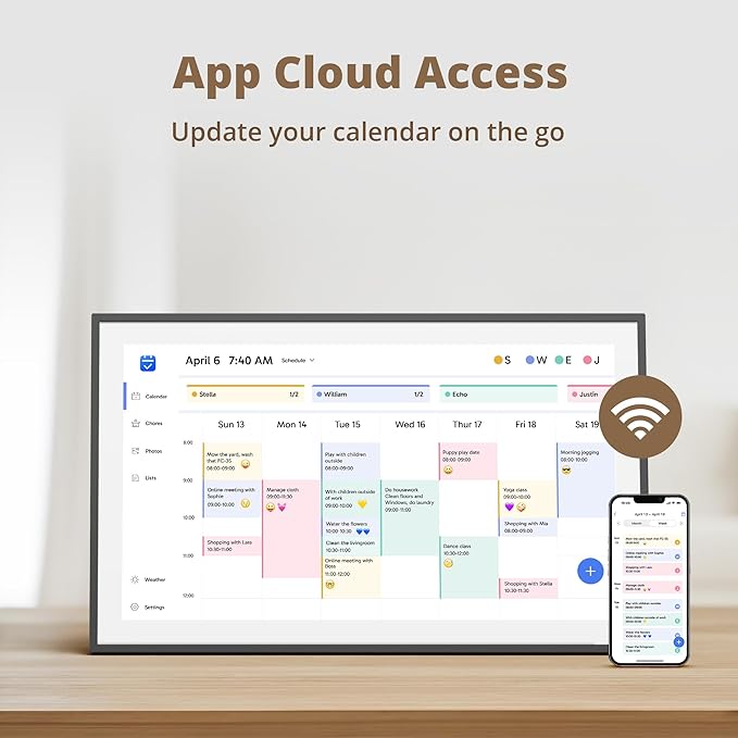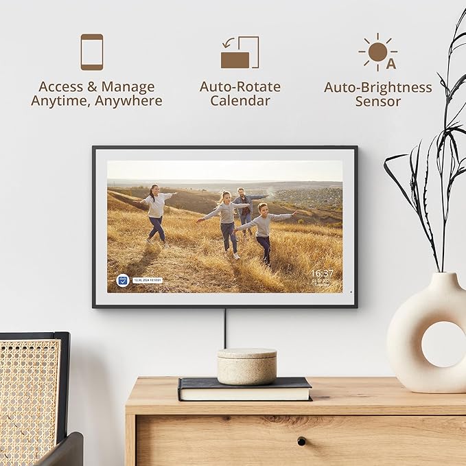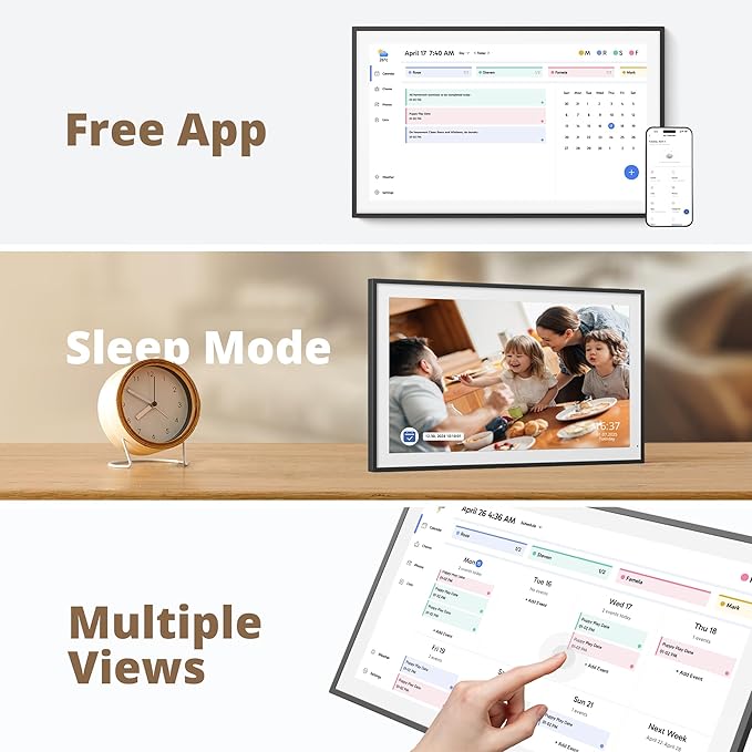 - 【Easy Setup and Auto-Sync】: Enjoy a user-friendly design that our smart picture frame allows for quick setup—just plug in, connect to Wi-Fi, and link your calendar to the Mobile App. Once synced, it seamlessly integrates multiple personal calendars (iOS, Google, etc.) into one unified interface. Authorize additional devices for even greater convenience.