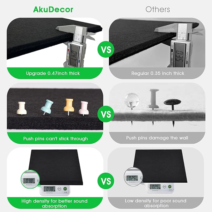 - 【Thickened Cork Boards】Our cork board alternatives have higher thickness (25% thicker) and density (35% denser) than traditional cork boards, which means better durability and sound absorption. It prevents push pins from sticking through the felt board and damaging the wall.