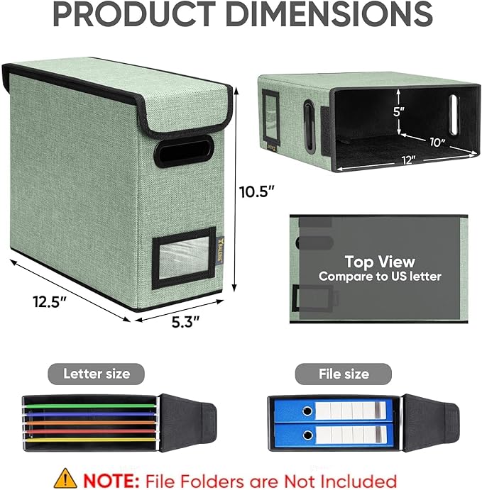 - [MULTI-PURPOSE USAGE] Measuring 5.3x12.5x10.5 inches, our file folder box is perfect for organizing files, bills, and papers in your home or office. Its versatility makes it practical for various needs