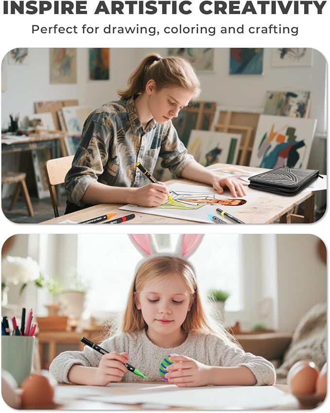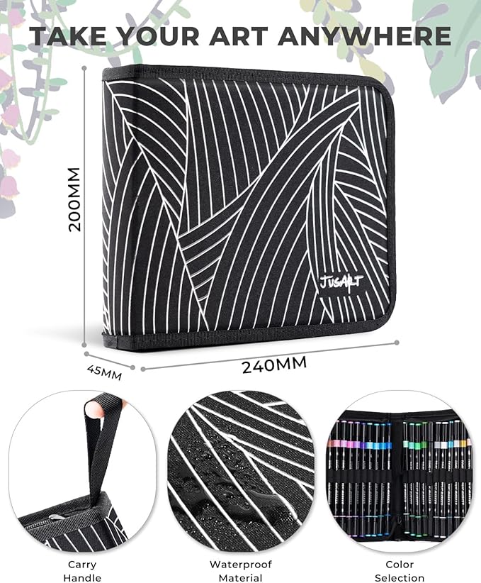 - Portable Art Bag Design: Keep your markers organized with the high-quality, waterproof, and uniquely designed expandable art bag. It ensures that each marker color is clearly visible and easy to access, preventing loss. With a zipper and handle strap for easy grip and portability, it’s perfect for adults, making it an essential art supplies