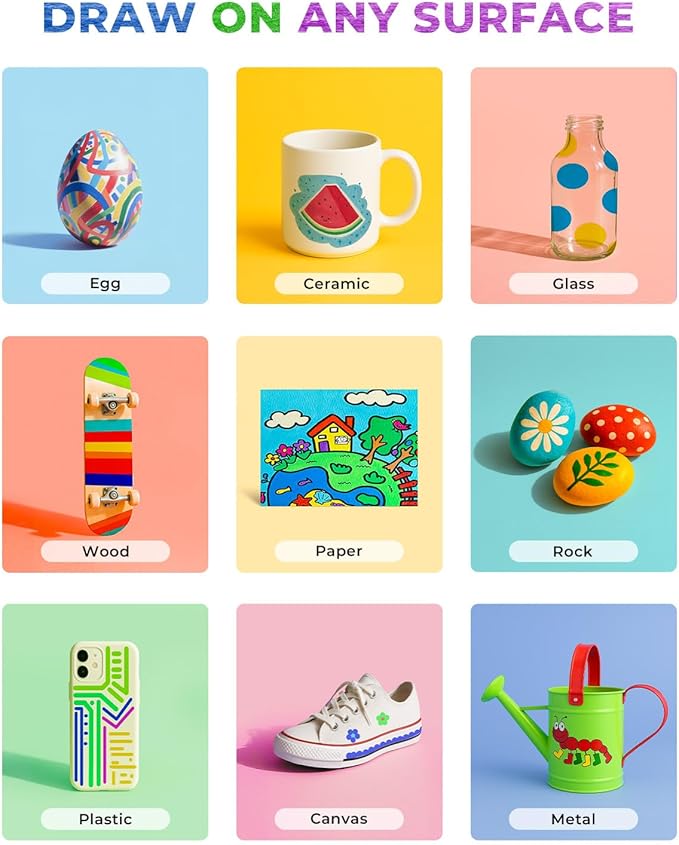 - Gift for Art Enthusiasts: Perfect DIY for any occasion—birthdays, Easter, Halloween, Christmas, Valentine's Day, Thanksgiving, and more—this paint pen set makes an ideal present. Whether for adults, creative enthusiasts, or professional artists, it’s sure to bring vibrant colors to their lives