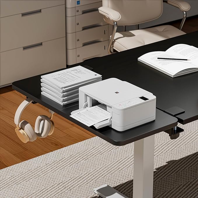 - INTEGRATED LAPTOP AND HEADPHONE HOLDER: Maximize efficiency with the thoughtfully designed bottom that includes a laptop stand and headphone hook. These additional storage options help keep your workspace tidy and free from clutter.