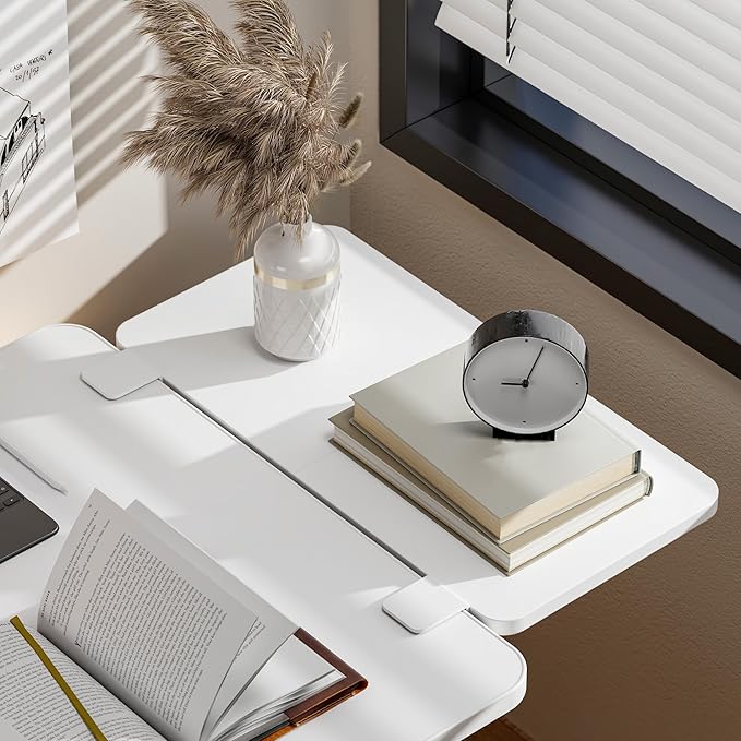 Desk Extender Tray, 24" x 12" Clamp On Shelf, Desk Extension with Laptop Holder, Table Arm Rest, Clamp On Keyboard Tray for Office and Home, Workstation Organizer, Medium, White