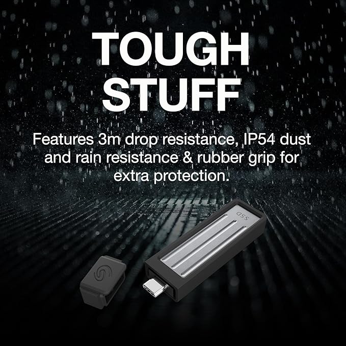 Seagate Ultra Compact 1TB, Portable SSD, 1000MB/s, USB-C, USB 3.2 Gen2, IP54 Water Dust and 3m Drop Resistant, Windows/Mac/iPhone/iPad/Android Phone/Tablet/PS4/PS5/Xbox Compatibility (STMX1000400)