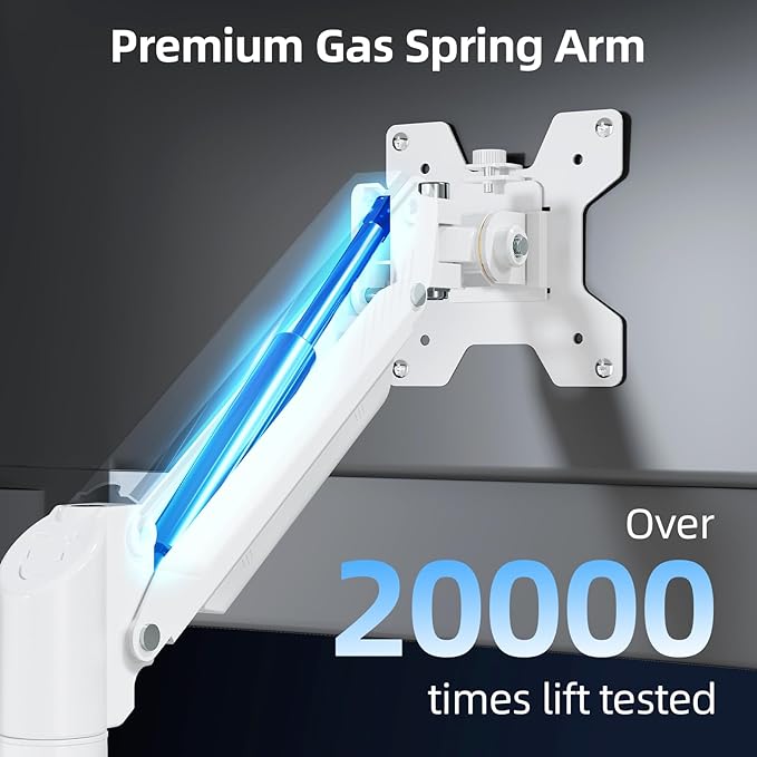 - Adjustment for Smooth Operation: The vesa monitor mount features a built-in gas spring system, allowing effortless adjustment based on the weight of your monitor. Whether you're repositioning the screen for a better angle or switching between tasks, the gas spring arm ensures smooth and stable motion for your display, creating a better user experience.