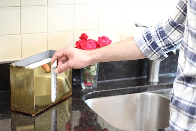 - Stylish Storage: Available in a range of color variations, this stylish tray enhances any décor while keeping your trifold towels or napkins easily accessible for guests. This gold paper towel holder is perfect for adding a touch of elegance to your kitchen countertop or office tabletop. Other great options include clear and black, offering versatility to suit any style preference.