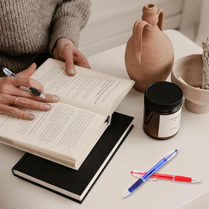 - 【Super Smooth writing experience】: The Retractable design ensures that these ballpoint pens have black ink ready to use at any time. The black ink color produces clear text, making it easy to read. The pen tip slides effortlessly on paper, providing a smooth and enjoyable writing experience that will make any task more comfortable.