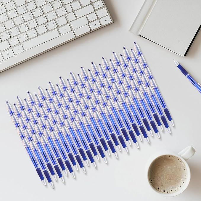 - 【Smooth writing experience】: The Retractable design ensures that these ballpoint pens have blue ink ready to use at any time. The blue ink color produces clear text, making it easy to read. The pen tip slides effortlessly on paper, providing a smooth and enjoyable writing experience that will make any task more comfortable.