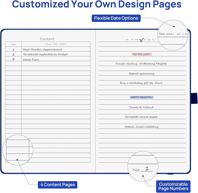 - 【Humanity Detail Design】ONAVIA A5 journal notebooks for work includes 1 Ribbon Bookmark that can help you mark the exact spot you left off. 1 Elastic Pen Loop ensures that you always have a pen or pencil readily available when you need to jot down a note. 1 Expandable inner pocket for storing loose items like notes, bills, receipts, appointment cards, and more