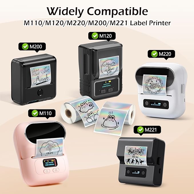 - STRONG COMPATIBILITY:Thermal label stickers can be printed using a thermal printer. It is fully compatible with Phomemo220/200/221/120/110, MUNBYN 941B/130B/RW402B and other direct thermal printers.(Not compatible with Brother and Dymo)