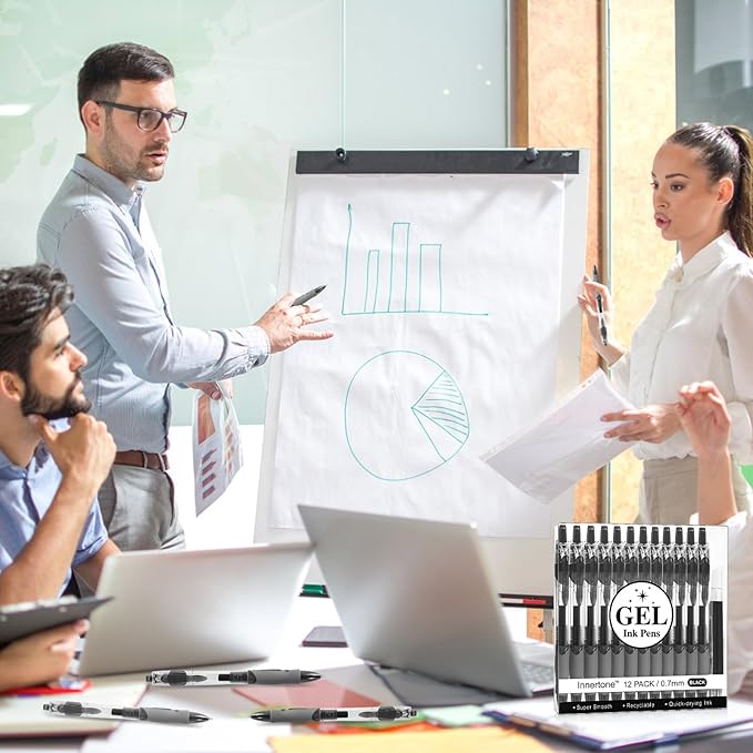 - Multicoloblack Combination to Meet Diverse Needs: The Innertone Gel Neutral Pen Set contains 12 x 0.7mm black gel ink pens, plus 4 black refills. Whether it's for daily notes, office records, or document signing, it can easily handle various situations and fulfill your writing needs in different occasions