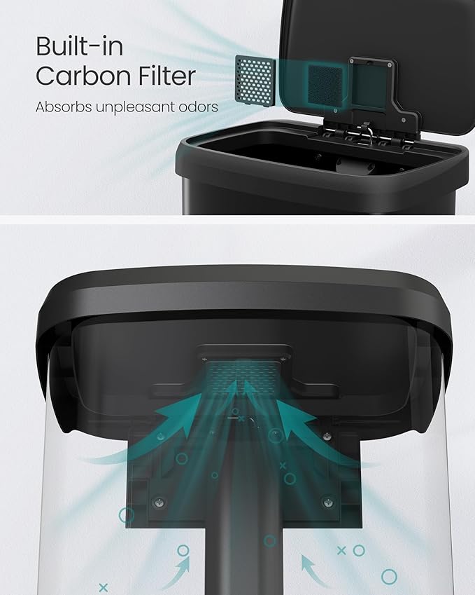 - [Thoughtful Detailing] The carbon filter in the lid helps absorb unpleasant odors, keeping your kitchen smelling fresh