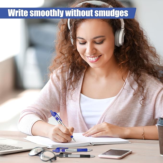 Blcculi 200 Pack Retractable Ballpoint Pens Bulk,1.0 mm Medium Point Pen,Blue Gel Ink Pens,Smooth Writing Pens with Comfortable Grip for Office Supplies Journal Writing (Blue Ink)