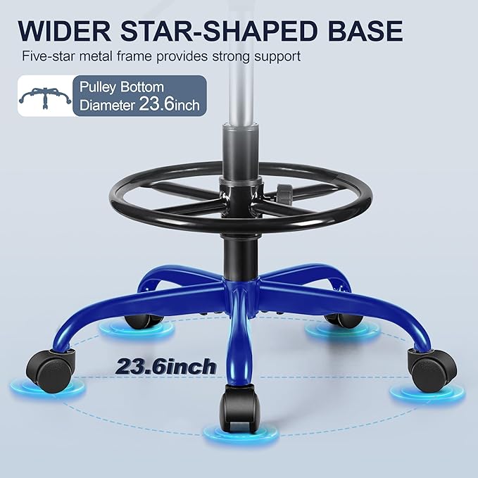 - Humanization Design: 15.8-inch cushion, more suitable for the comfortable size of most people; 23.6-inch five-star casters drafting chair, less prone to tipping over and more stable. The 2mm thick base supports up to 300 pounds