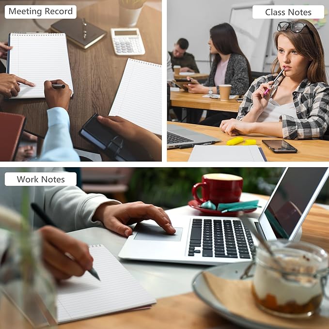 - Spiral Binding: our office steno book is equipped with top spiral binding, featuring a strong metal spiral coil, this design allows you to turn the pages without the worry of unintentional tears smoothly; Additionally, the top bound orientation is ideal for left-handers, eliminating the discomfort of resting your hand in the spiral while writing