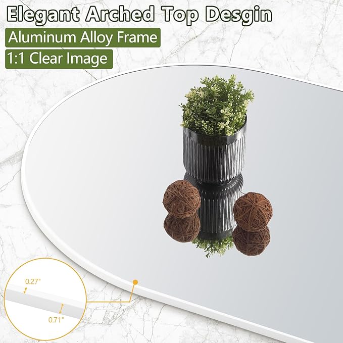 - High-quality Frame: Made from top-grade aluminum alloy, the frame of our white mirror is both durable and stylish. Its sleek design enhances the look of your floor mirror while protecting against water damage and rust, ensuring long-lasting quality.