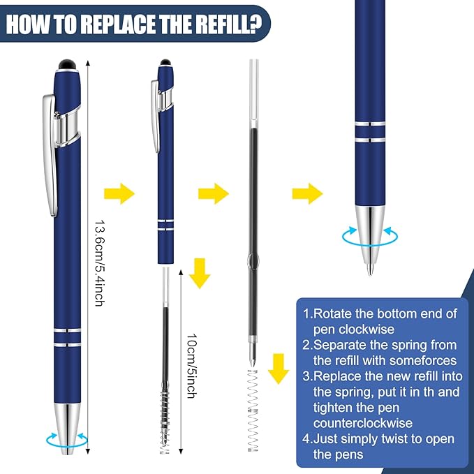 - Multiple Ways to Use: the ballpoint pen can not only be applied as a stylus pen to take notes on some equipments with touch screens, but also be put into use as a normal writing pen to write words you want on paper surfaces