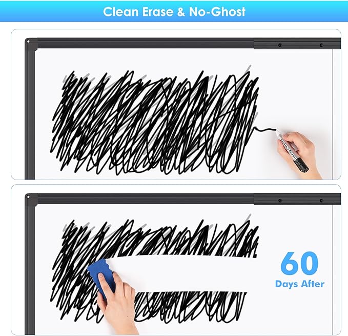- 2X Stain Resistantence,Build to last: With specialized 365℉ baking technique, maxtek rolling whiteboard features 2X surface density that of a regular whiteboard, making this large white board hard to scratch and 50% less ink absorbed. Therefore, we can easily erase any handwriting, even left for a long time, without leaving any ghosting