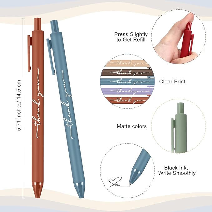 - Convenient Size: the thank you pens are created with a standard size, providing an easy fit into any pen holder or pocket; Their professional size also ensures a steady and reliable grip throughout writing performances