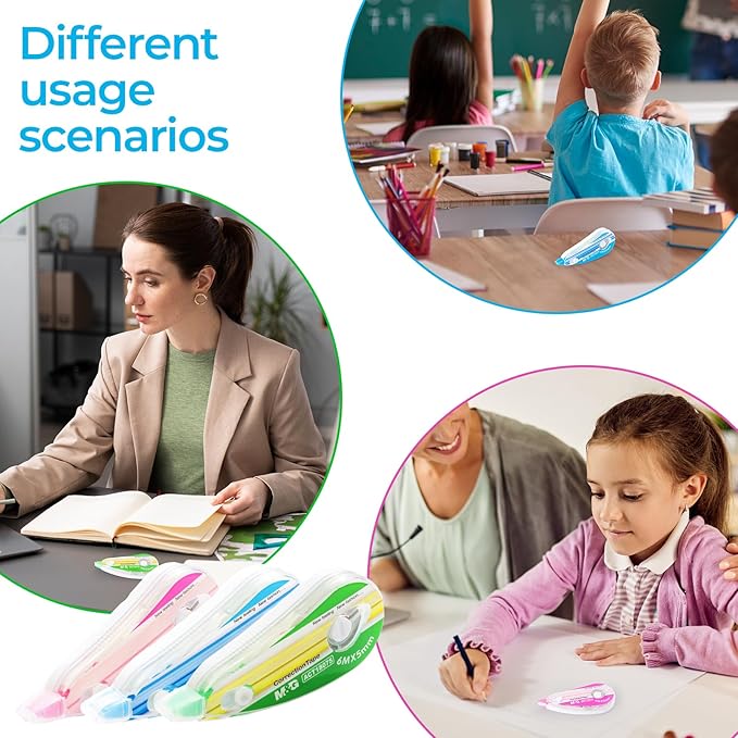 - 【Portable and Compact】: Small enough to fit into a pocket or bag, our correction tapes can be used around the home, office or at school.Compact and portable correction tape, fits easily into pockets and pencil cases.