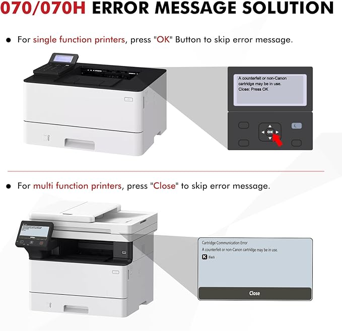 - High Page Yield: Up to 10,200 pages per 070H 070 black toner cartridge at 5% coverage (Letter/A4) for Canon imageCLASS MF465dw toner