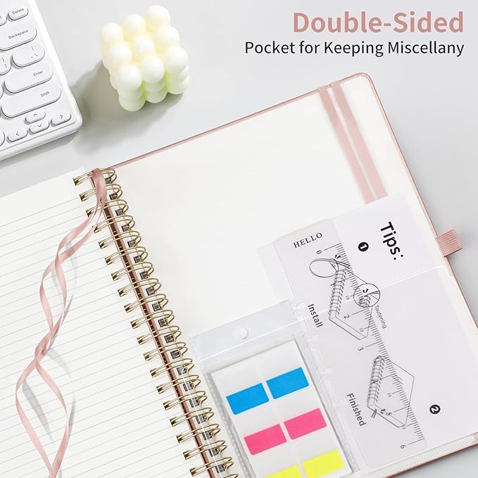 - All-Inclusive Design: Includes sticky notes, PVC pocket, pen holder, removable ruler, 2 elastic bands, DIY bookmark, and rounded safety corners.