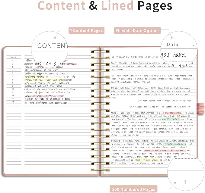 - Lay-Flat Durability: Premium vegan leather cover with tear-resistant spiral binding (180° lay-flat, 360° rotation) suits left- or right-handed users.