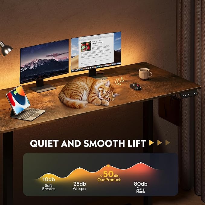 - 【Quite & Smooth Height Adjustments】Tri-motor system delivers whisper-quiet (<50dB) height transitions (28.35"-46.45") in seconds, eliminating manual adjustments and prevent desktop tilting. Standing desk adjustable height perfected for ergonomic shifts, ensuring buttery-smooth operation whether sitting or standing.