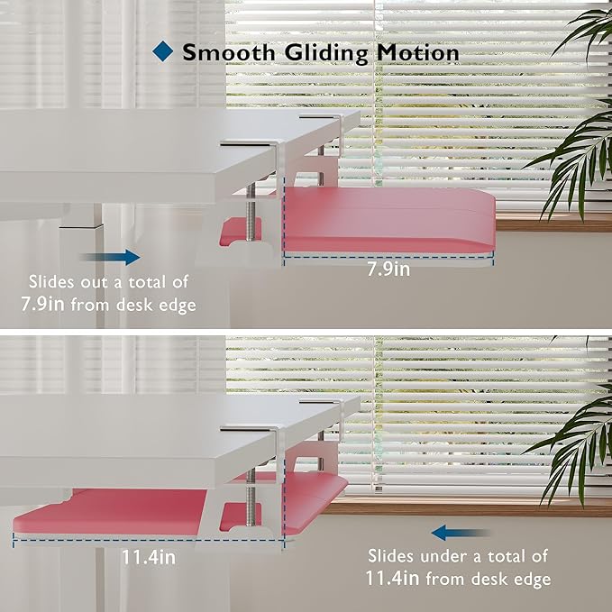 - ✅ MAXIMIZE YOUR DESK SPACE – Free up your desktop by placing your keyboard and mouse on this smooth slide-out tray. The ergonomic position helps reduce wrist strain while keeping your workspace tidy—perfect for offices, remote workstations, and gaming setups