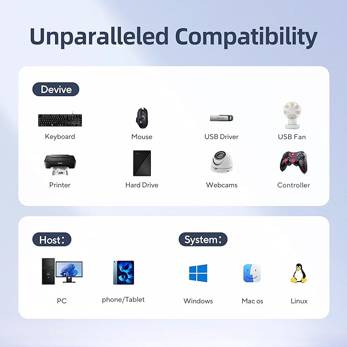 - Widely Compatibility: The powered usb hub is compatible with Windows, MacBook Air/Pro series to Latest, iPad Pro, iPhone 16, Lenovo, Samsung, Dell and most all Type-C devices. USB-C Cable Length is about 19.7". Long enough to connect your laptop