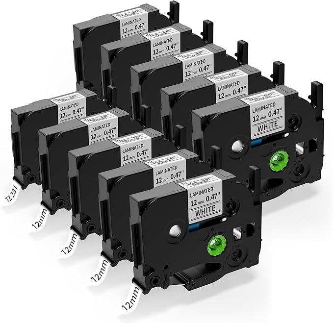 - 10 Pack: Upgrade your labeling experience with our AZe-231 tape, the ideal choice for Brother label maker tape. This replacement for tze tape 12mm 0.47 laminated white delivers crisp, durable prints for all your labeling projects;Color: Black on White