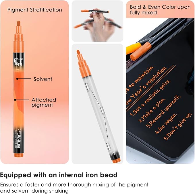 - Bold Neon Colors: Enhanced rollerball tech for quick, uniform ink mix, ensuring vivid, consistent lines on glass, whiteboard, or chalkboards. Perfect for vibrant, eye-catching visuals! Elevate your visual communication!
