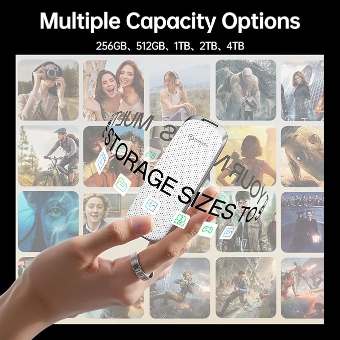 - BUILT TO LAST, LIGHTWEIGHT: Designed with durable Zinc alloy & plastic shell, the external hard drive 2TB is shock resistant, drop resistant and dustproof, providing superior protection for your critical data. Whether you're commuting, on a business trip, traveling or shooting outdoors, this External Solid State Drive safeguards your files in any scenario, operating silently and reliably.