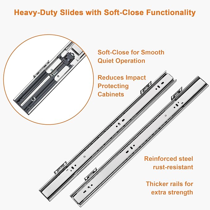 - Soft-Close & Heavy-Duty Slides: These cabinet pull out shelves feature full-extension soft-close slides for smooth, quiet performance. Designed for everyday convenience, the pull out cabinet drawer makes it easy to access hard-to-reach items, helping you stay organized and maximize your storage space
