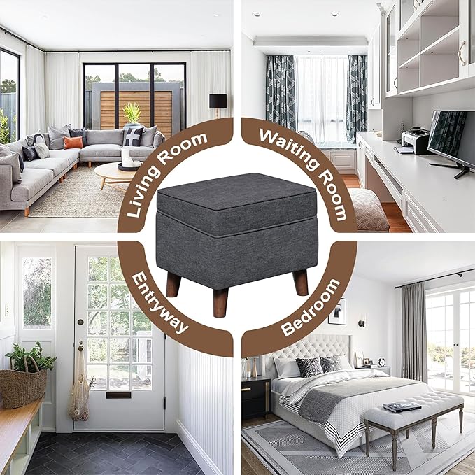- 【Spacious Hidden Storage】 Lift the lid to reveal a spacious storage compartment, ideal for organizing blankets, books, or other essentials. This ottoman combines practical storage with stylish design, keeping your space neat and clutter-free