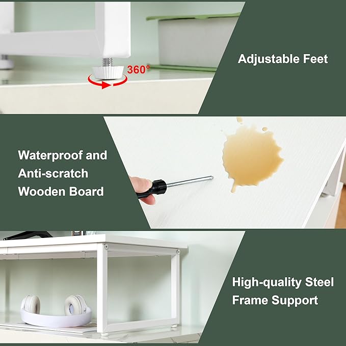 Clikuutory 59" Large TV Riser for 32-75 inch TVs, Tabletop Stand with Steel Legs, Storage & Dual - Screen Office Desk Function, Ideal for Home Office, Bedroom, Living Room, White