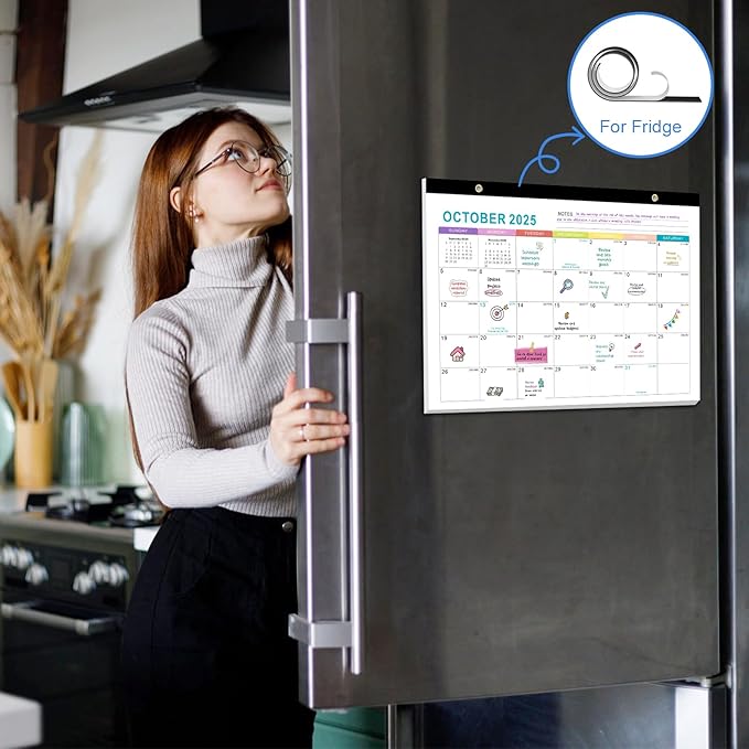 - đăPlastic Cover & Ink-Proof PaperăGannyfer 2025-2026 fridge monthly calendar comes with a transparent plastic cover and two corner protectors, effectively prevent water and protecting the paper. The paper is made of thick paper, which can avoid ink penetration, providing you with a smooth writing experience and making your notes clear
