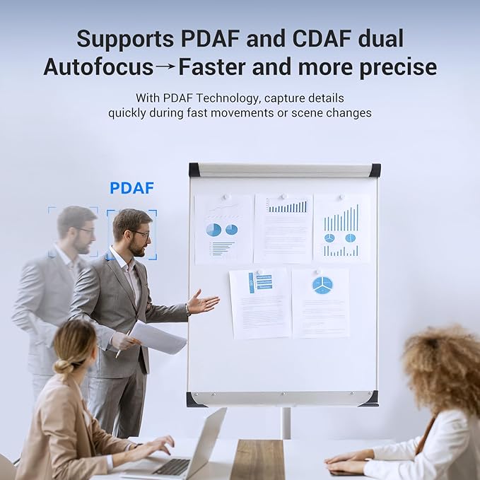 - Precise PDAF Autofocus & Auto Light Correction: This 4K webcam for pc streaming is equipped with advanced PDAF autofocus technology (1s fast focus), which focuses faster, more accurately and more stably. Its automatic light adjustment function improves clarity by balancing shadows and highlights, so you don't have to worry about light adjustment during meetings and creations. Designed for office professionals and creators who pursue excellent performance and outstanding visual effects