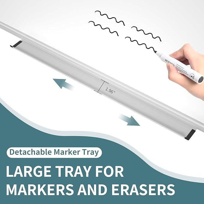 - Easy to Install: Mounted vertically or horizontally just as you like, the detachable free marker tray can be placed on any of the board's 4 sides
