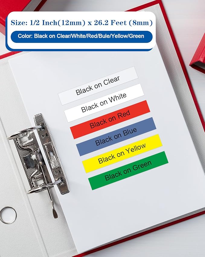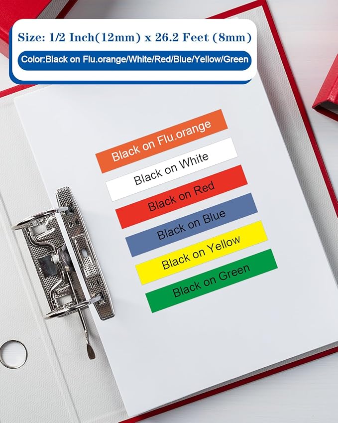 - Package Information: 6-pack compatible for brother p touch label tape TZe 12mm 0.47 laminated colored, Size: 12mm (1/2'') x 8m (26.2 feet) per label tape