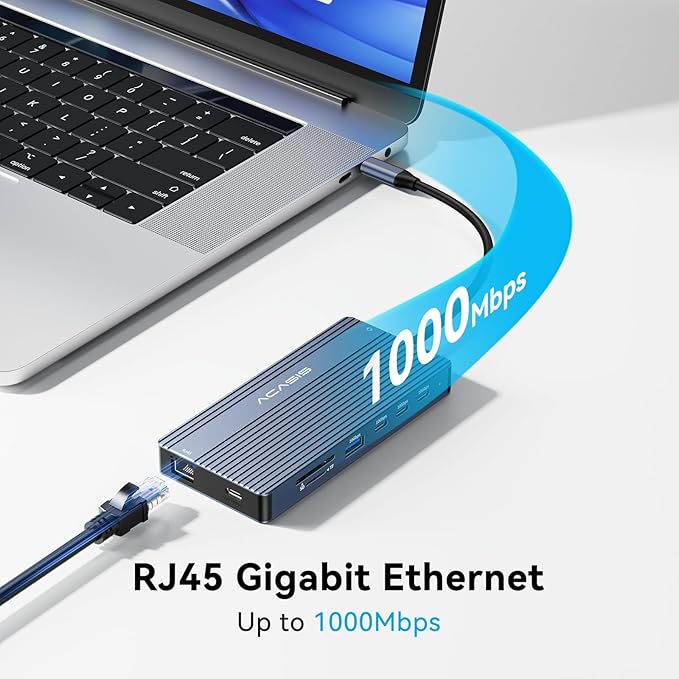 ACASIS USB C Hub with 4K Video Output USBC Splitter with 2*HDMI+4 * 10Gbps Data Transfer+Ethernet+SD/TF+Audio+PD100W Docking Station Dual Monitor for Laptop, Portable Monitor and More Type C Devices