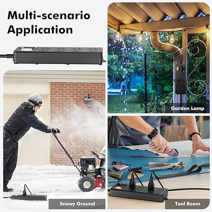 - 【12-in-1 Multi-Function Design】: Equipped with 8 wide-spaced AC outlets (1.8 inches apart), 2 USB-A ports, and 2 USB-C ports, this power strip can charge up to 12 devices simultaneously. Perfect for homes, offices, or outdoor activities. (Note: USB-C Not compatible with iPhone 15/16 original Type-C cables.)
