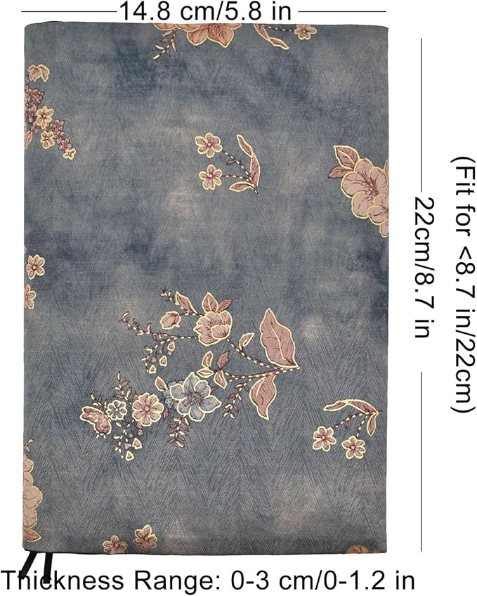 - 【Book Cover Dimensions】 Length: 22 cm/8.6 in(Fits 8.5-inch long books), Width: 14.8 cm/5.8 in,Thickness Range: 0-4 cm/0-1.62 in.Suitable for books, hardcover novels, and scrapbooks. Please ensure the book size is smaller than the cover size and not too thick for the cover. Check dimensions before buying.