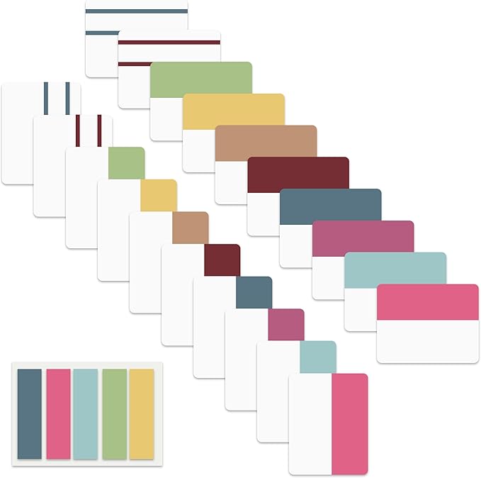 - 500 pieces Tabs: 500 pieces 21 sets in total, 400 pieces 2 inch sticky tabs in 20 sets with different pastle colors,100 pieces 0.5 in tabs in 1sets, 20 pieces each color